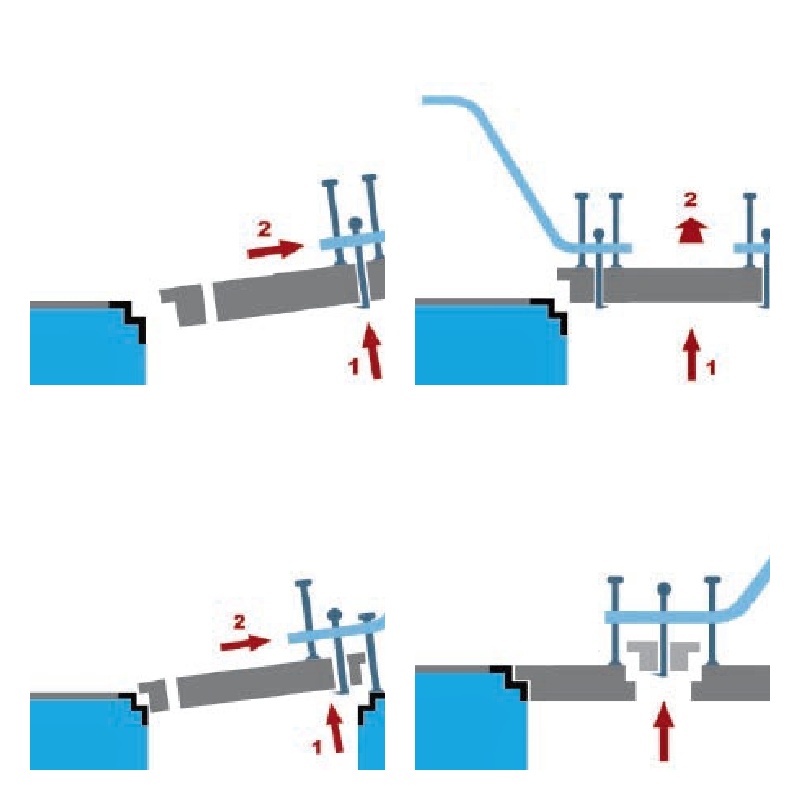 - Dvě svorky bočních tyčí jsou flexibilně posuvné, aby se poklop dal dokonale zajistit