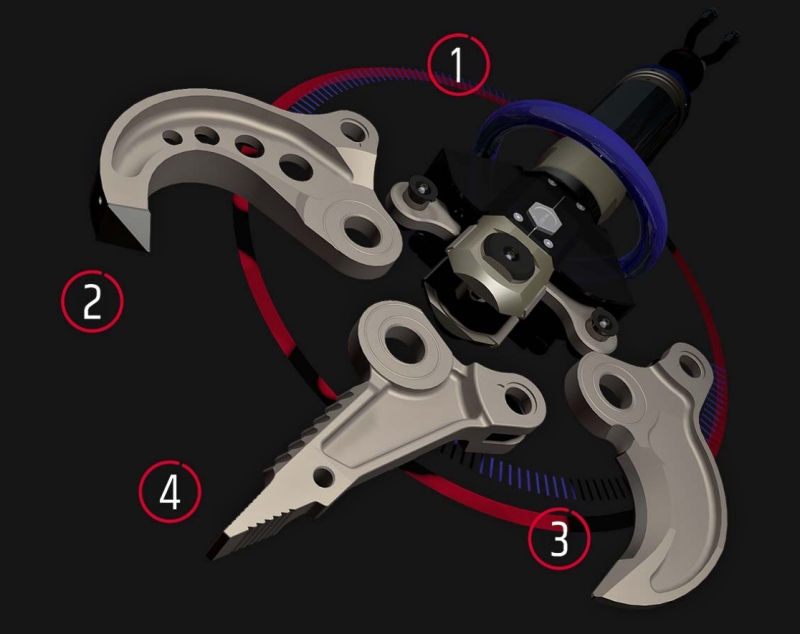 Základní technické vlastnosti: Maximální síla střihu: 360kN Maximální síla odtlačování: 95kN Maximální šířka rozevření kleští: 360mm Maximální otevření čelistí: 360mm (otlačování) Maximální hloubka čelistí: 180mm Požadovaný tlak oleje: 620bar Hmotnost: 19,5kg Rozměry: 850x240x190mm