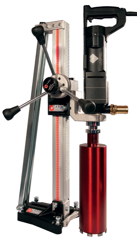 Jednorychlostní jádrový vrtný motor s příklepem CARDI DP 2200 MA-16 určený pro vrtání za sucha s odsáváním nebo s vodním výplachem. Jde o velmi specifický univerzální stroj, který umožňuje vrtání armovaného betonu za sucha a to až do průměru 152mm! Pracovní rozsah stroje je v armovaném betonu 52 až 152mm za použití stativu nebo do 102mm z ruky. V cihllovém zdivu až do 202mm ze stativu.